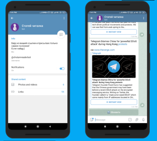 打开 t.me/chotamreaderbot,点击“开始”,把你想转换的网页 URL 发给机器人,它就会给你生成一个即时查看版本。这个机器人界面是俄语的,偶尔会有些小错误,但大部分网页都能完美转换,挺靠谱的。
