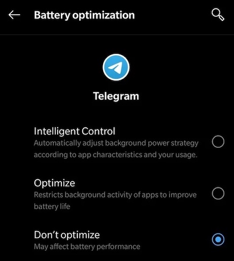 如果你不想完全关掉省电模式,也可以把 Telegeram 从优化里排除,让它自由下载。操作如下: