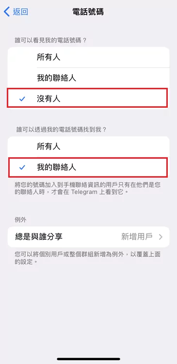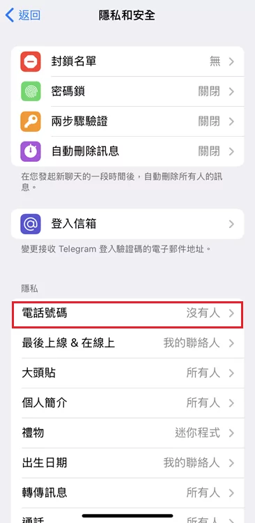 一句话总结:隐藏电话号是使用 Telegeram 的第一道防护墙。别嫌麻烦,这真的是最基本的一步。