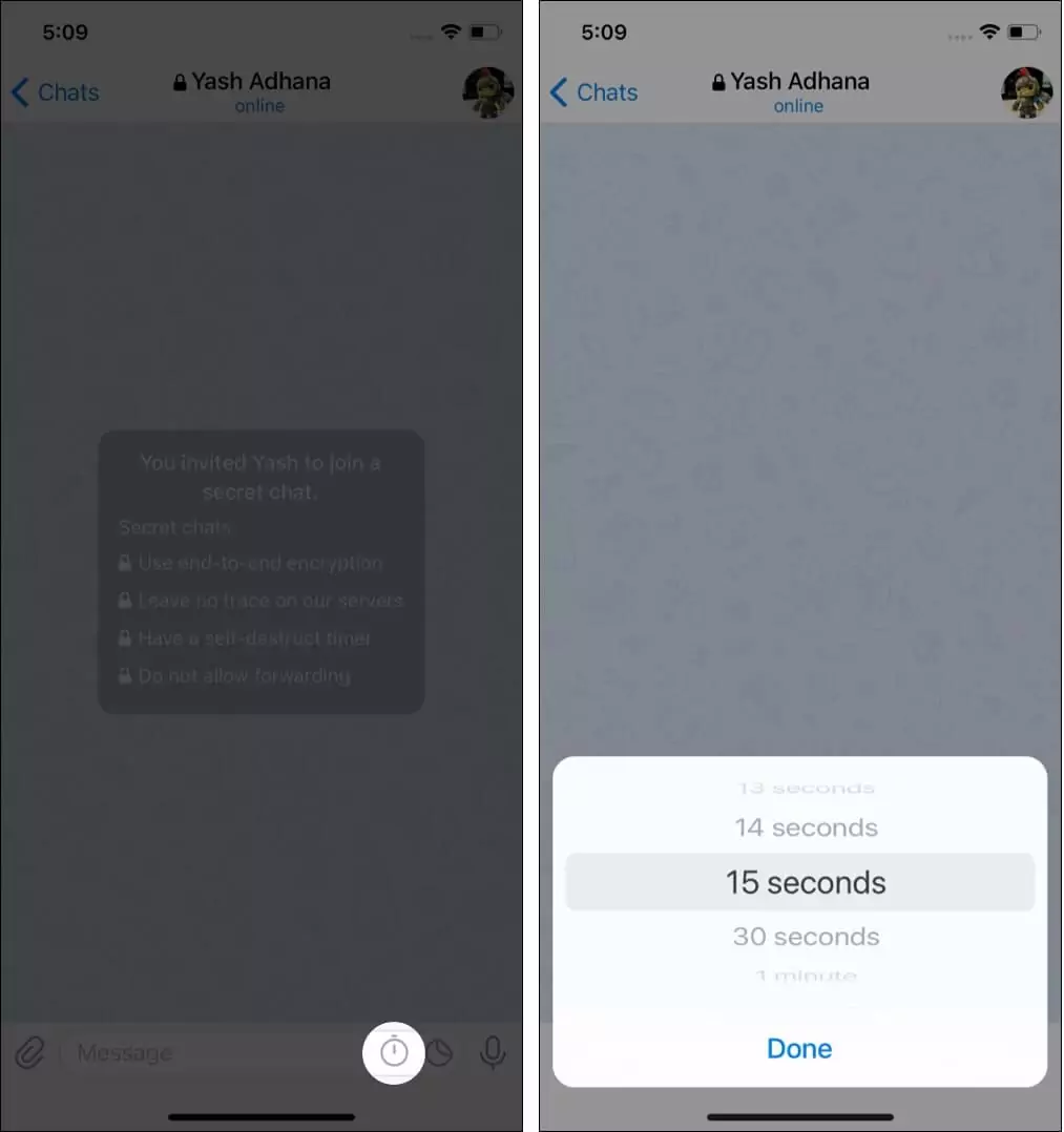 这个功能只存在于【秘密聊天】里。开启后,你能为消息设置一个自动销毁的时间,从一秒到一周随你选。对方一旦点开消息,倒计时就开始走,时间一到,消息会同时从你和对方设备中消失。