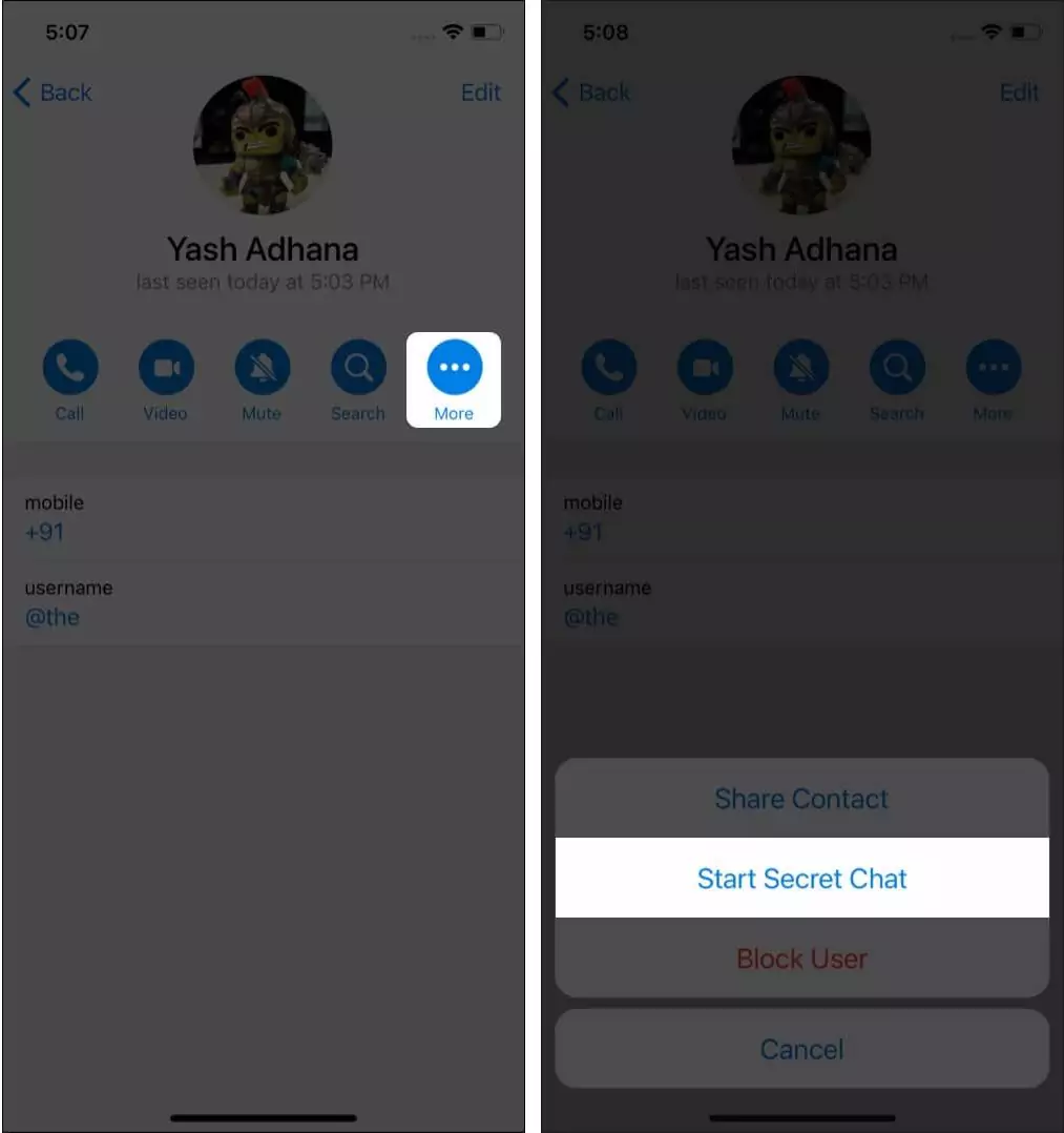 | 可用范围 | 一对一秘密聊天 | 所有聊天 |