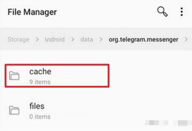 第 2 步: 按这个路径去找:Android > Data > org.telegeram.messenger > Cache。