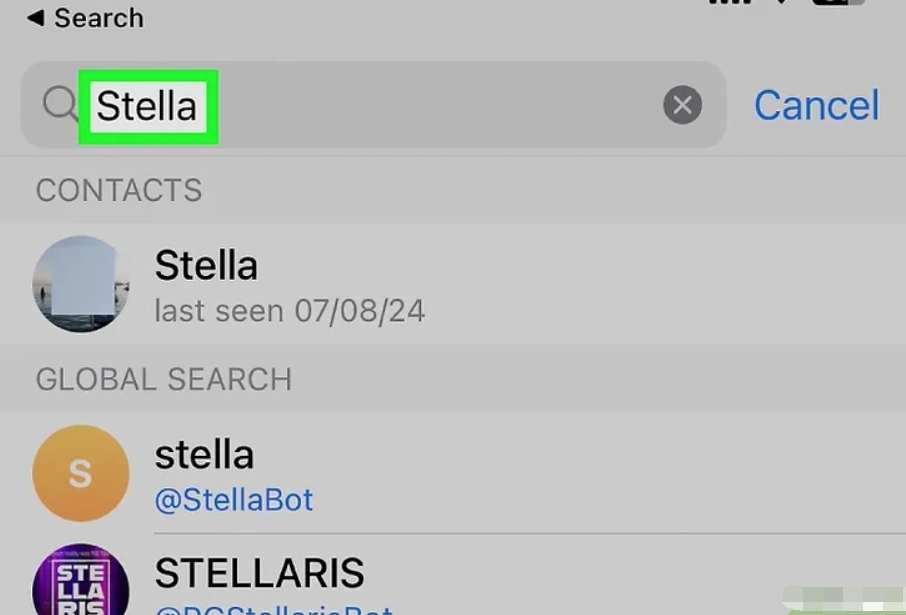 如果你知道对方的 Telegeram 用户名,直接在搜索栏输入。