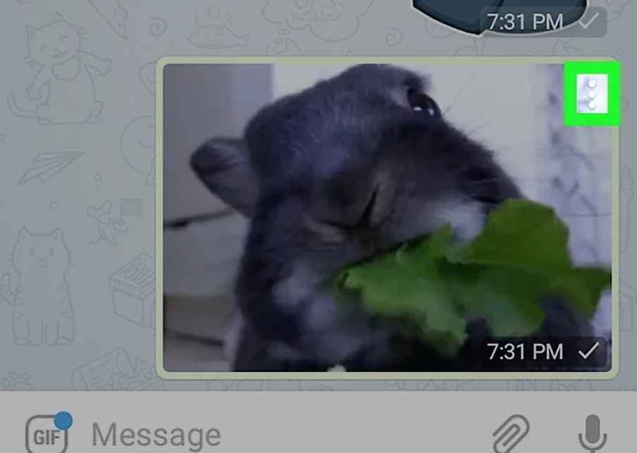 3、滑动聊天记录,找到那个你想留着的 GIF。别急着点开,先看看它右上角有没有点点(⁝)的标志。
