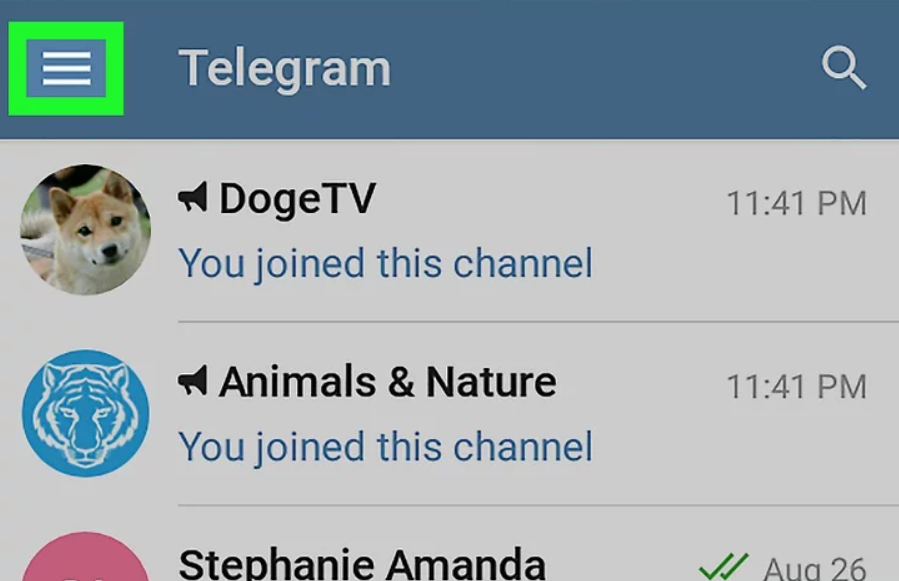1、打开 Telegeram 应用,图标是蓝色圆圈里的白色纸飞机。一般会直接进入聊天列表,如果进入了聊天界面,先按返回键回到聊天列表。
