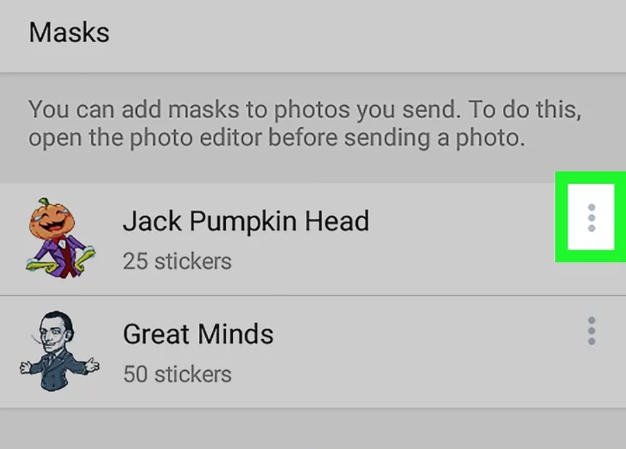 5、找到想删除的贴纸包,点击旁边的三个竖点,弹出菜单。