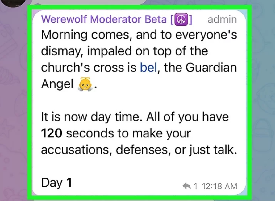 4、了解村民阵营的角色。Telegeram 版比普通聚会版花样多: