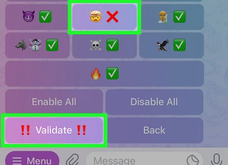 4、配置角色:选哪些角色允许出现,点 验证 确认。输入 /rolelist 可查看角色与 emoji 对应关系。