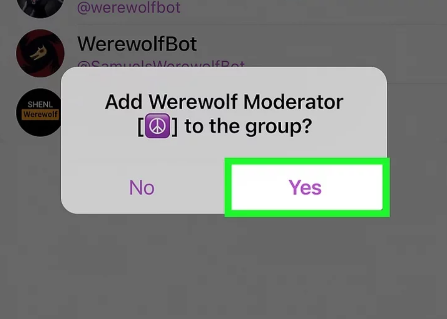 5、找到 Werewolf Moderator 后点完成,就加到群里了。