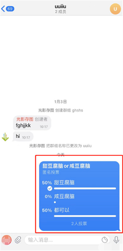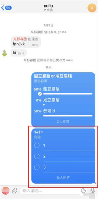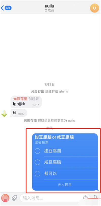 4、投票建好了,群里的每个人都能点选自己的选项。