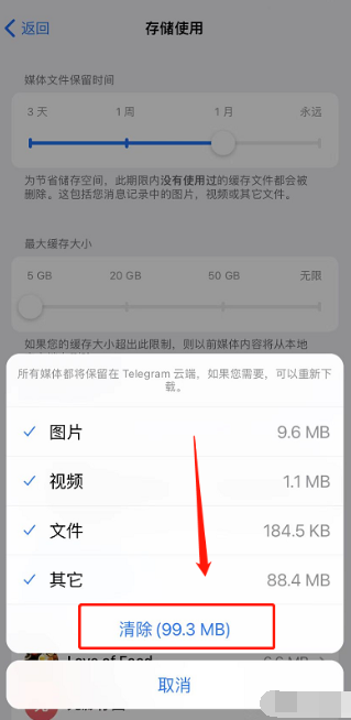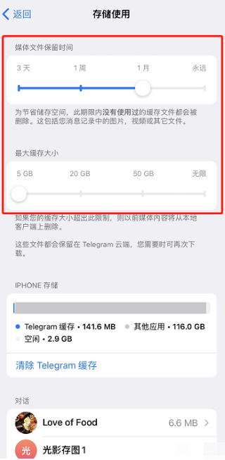 这里可以设定媒体文件保留时间和最大缓存大小。这里以设成一个月和5GB为例,这样手机不会被堆满,也不怕重要文件被误删