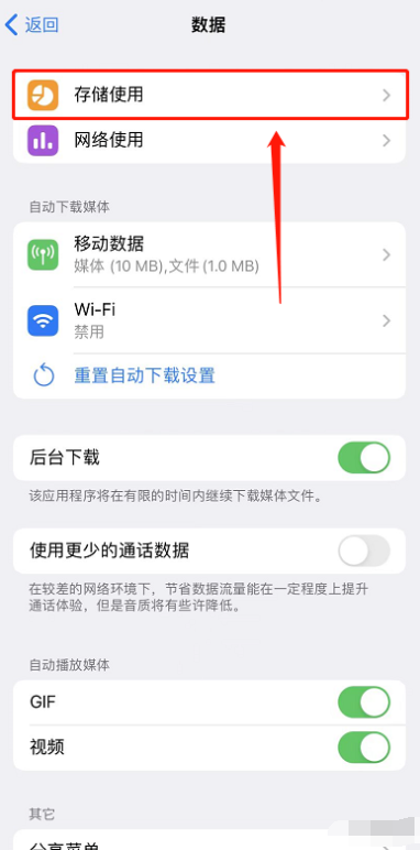 点击「存储使用」