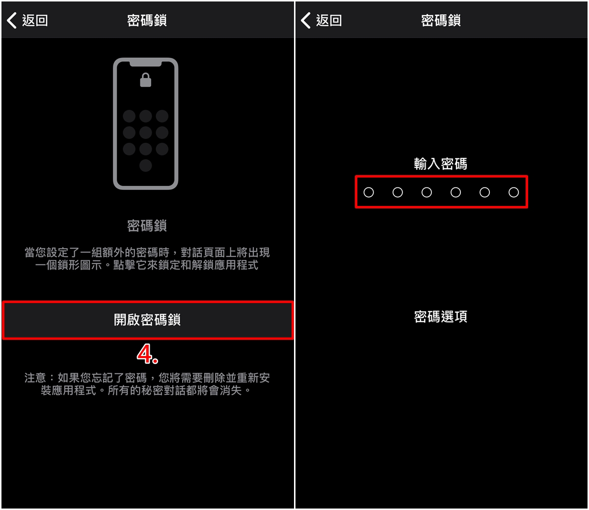 点击「开启密码锁」,输入你想设置的密码,再确认一次就搞定。