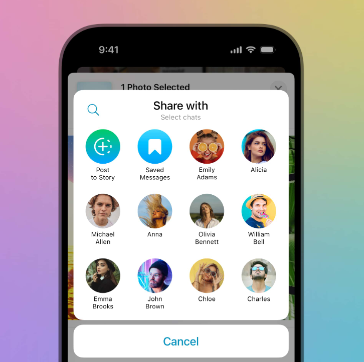 你现在可以通过 iOS 默认的 分享 按钮,将其他应用中的媒体直接分享到 Telegeram 故事。