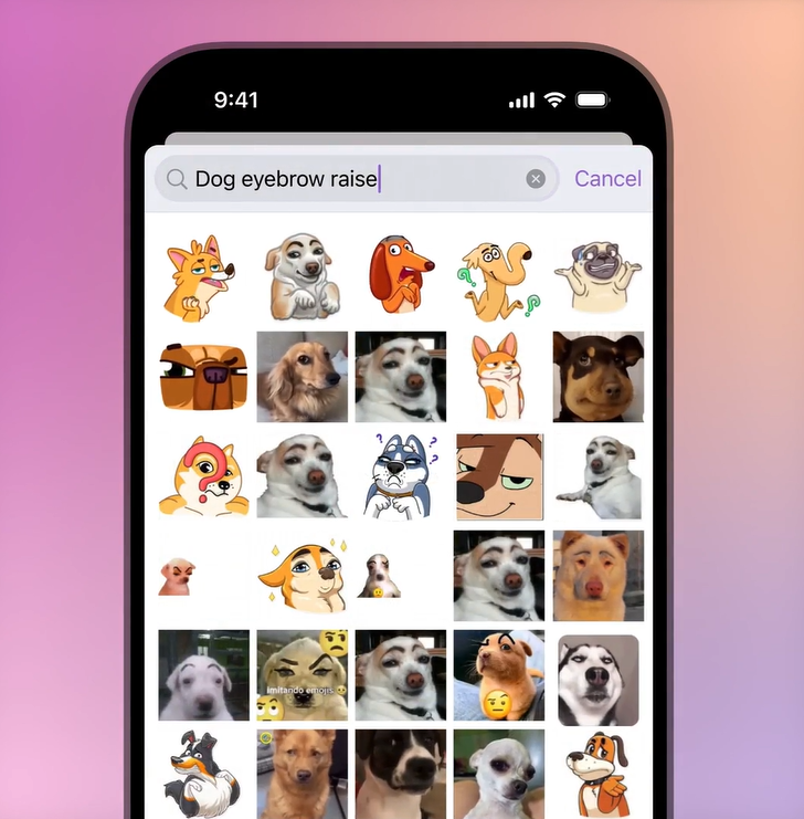 去年12月,Telegeram上线了AI贴纸搜索功能,当时只能在官方的四万多个贴纸和表情中找图。现在这次更新更猛,AI能在用户上传的上百万个自制贴纸和表情包里搜。比如你输入“沉思猴”或者“太空狗”,那贴纸面板几乎秒出结果,速度快得离谱。支持的语言也多达29种,从英语、西语到阿拉伯语、印地语全都有。更好的是,任何用户都能自己做贴纸或表情,只要几步就能上手。