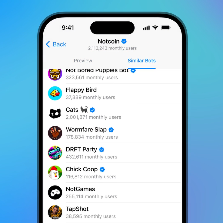 和频道页一样,现在每个机器人的资料页下方也能看到相似的机器人。比如你关注了一个AI聊天机器人,它会顺便推荐一些类似的服务、工具或小游戏,方便你继续探索。