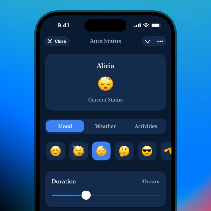 如果你授权了位置权限,还能在上班 💼 或度假 🏖 时自动改变状态。