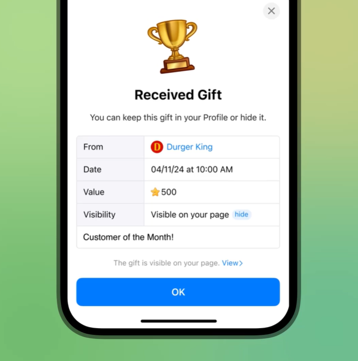 同时,我们新增了隐私设置,让你能控制谁可以给你送礼物,并显示在你的个人资料上。