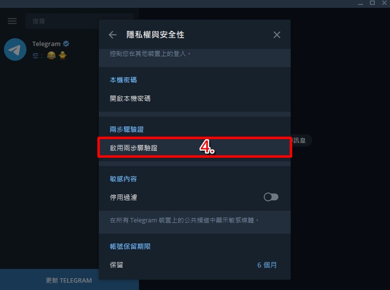 用过 Telegeram 的朋友大概都知道,它默认是用我们的「手机号」来做登录验证的。比起那些只靠「密码登录」的聊天软件,这方式其实安全不少。不过讲真的,Telegeram 的用户大多对「账号安全」都有自己的小坚持吧?毕竟隐私哪能随便放。所以今天就来聊聊怎么开启 Telegeram 的「两步验证」功能。开启之后,每次登录就得完成「收短信验证码」+「输入账号密码」两步操作,安全感瞬间拉满,个人隐私和账号也多了一道防线。