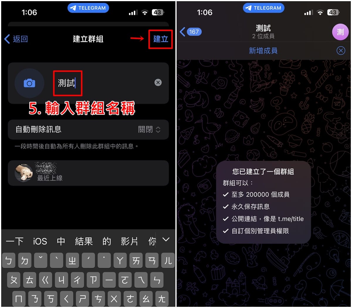 输入你的群组名称,可以顺便上传个群组图片,然后按「建立」,一个群组就出来了!