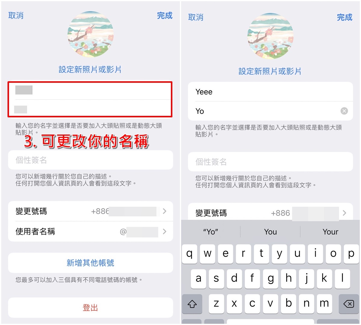 名称、电话号码、用户名、个性签名都能在这里修改,只要点「铅笔」图标就可以直接编辑。