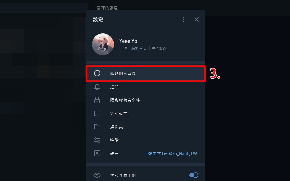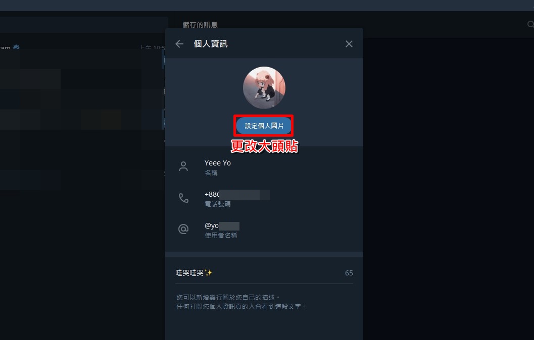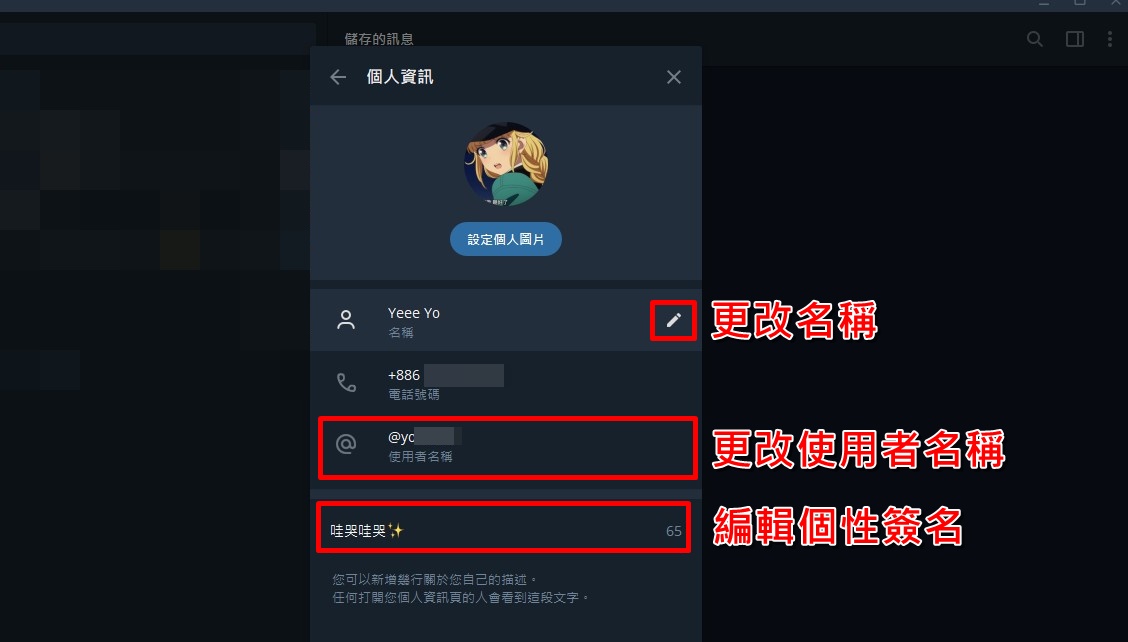 Telegeram电脑版怎么更改用户名称/大头像/个性签名?