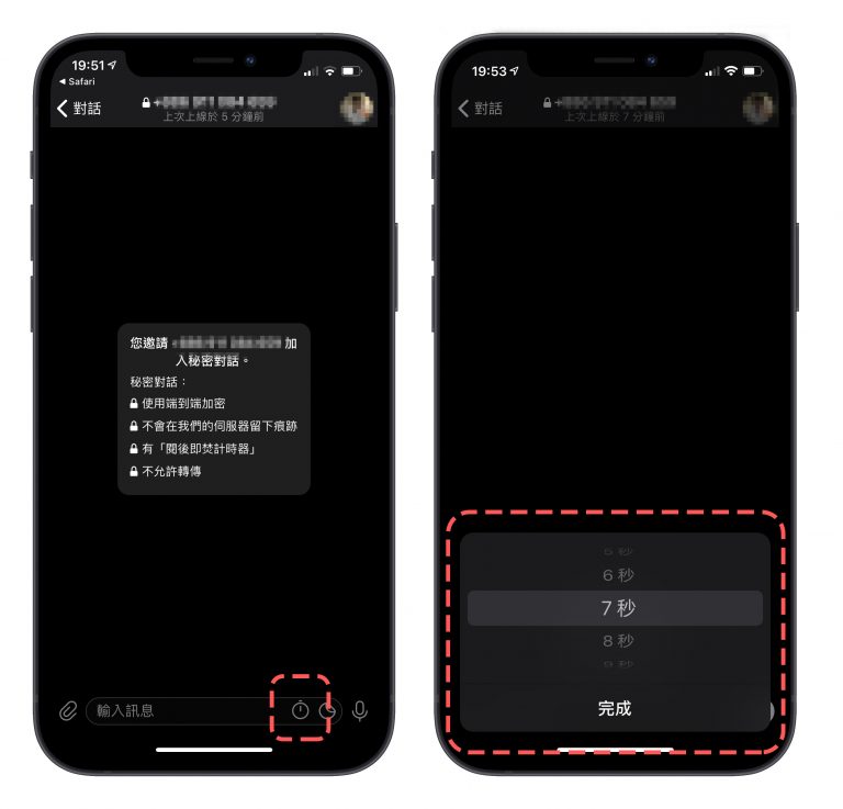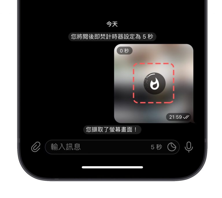 在秘密聊天里,你还能给消息设置阅后即焚时间。最短可以设一秒,最长一周。对方一旦看了消息,计时器就开始倒数,到时间消息就从双方聊天里消失。