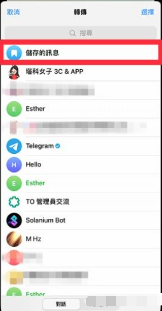 2、iOS选择转传到“储存的讯息”,Android选择“我的收藏”。